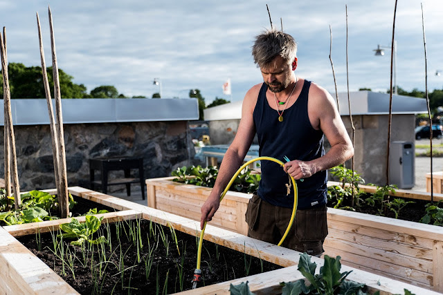 Det blev sommar till slut och nu är alla plantor i god jord och växer så att det knakar. Under maj och juni har arbetet pågått frenetiskt. Vissa dagar arbetar jag tolv timmar och då bara med utplantering och iordningställande. Jag brukar se det som ett substitut till att gå på gym, en del dagar lyfter jag flera ton och går flera mil. Att odla i flera olika odlingar är både krävande och otroligt intressant. Nu prunkar det på Takfarmen1, Jon och jag har fått upp alla växter till Takfarmen 2, det nya projektet på det nybyggda bostadsområdet Nordanby Äng är välfyllt både i och utanför växthuset. Skogsträdgården är trots vattenbrist ändå frodig och tillsammansodlingen grönskar på sitt sjätte år. Nu har vi har semester, hela familjen, till och med från podcasten "Två odlare emellan" som vilar under juli månad.