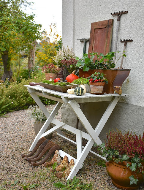 Jag ska städa av lite på kökstrappan och på det gröna planteringsbordet vid ladan och pynta upp lite där också, men det får bli en annan dag. Nu är det dags att ta kväller och ladda upp så smått inför en ny arbetsvecka. Skön söndagkväll önskar jag er!