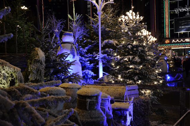 Innan teatern började tog vi en runda bland alla juleljus och marknadsstånd, snögubbar, kulörta lyktor, snö, granar och julstämning.
