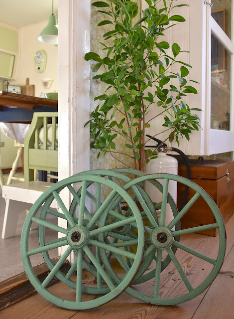 Ja, nu är ni ju säkert ganska vana vid mina galna loppisfynd. Och säkert har ni lärt er att det inte är någon idé att fråga vad i allsin dar jag ska ha alla grejer till. För det vet ju inte jag heller alla gånger. Som nu igen, när jag helt plötsligt äger fyra gamla trähjul med spindelnät och allt.