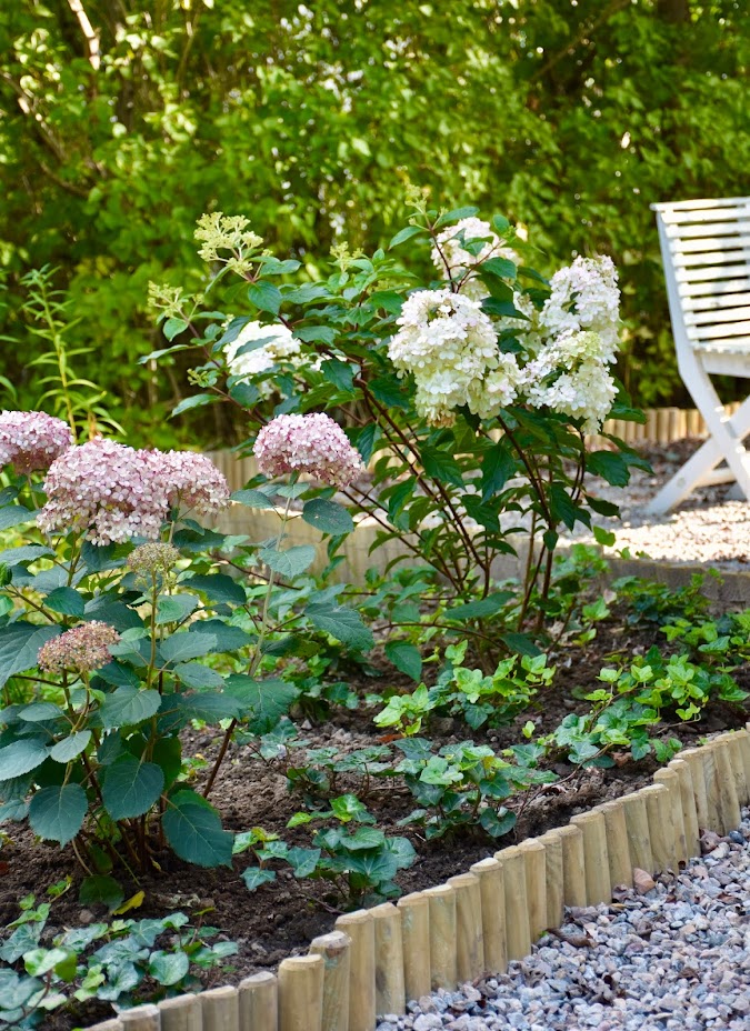 Mest nyplanterade är vipphortensiorna 'Annabelle Pink' och 'Vanilla Fraise', och de ser också ut att gilla läget. Murgrönan har också tagit sig snabbt, vilket jag är glad för. Medan jag väntar på att den ska bli helt marktäckande får jag gallra ogräs då och då.